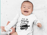 The cutest I'm Ordering Dinner body vest / onesie, made from soft combed cotton for baby's delicate skin and comfort. It comes with popper buttons for easy nappy changes. This item is available in both long and short sleeves.