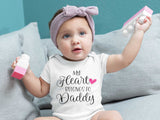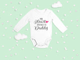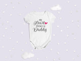 The cutest My Heart is Daddy's body vest / onesie, made from soft combed cotton for baby's delicate skin and comfort. It comes with popper buttons for easy nappy changes. This item is available in both long and short sleeves.