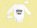The cutest Poop body vest / onesie, made from soft combed cotton for baby's delicate skin and comfort. It comes with popper buttons for easy nappy changes. This item is available in both long and short sleeves.