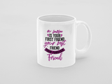 - A Mother is Your First Friend, Your Best Friend, Your Forever Friend. A beautiful subtle mug with hints of purple and a flawless finish.